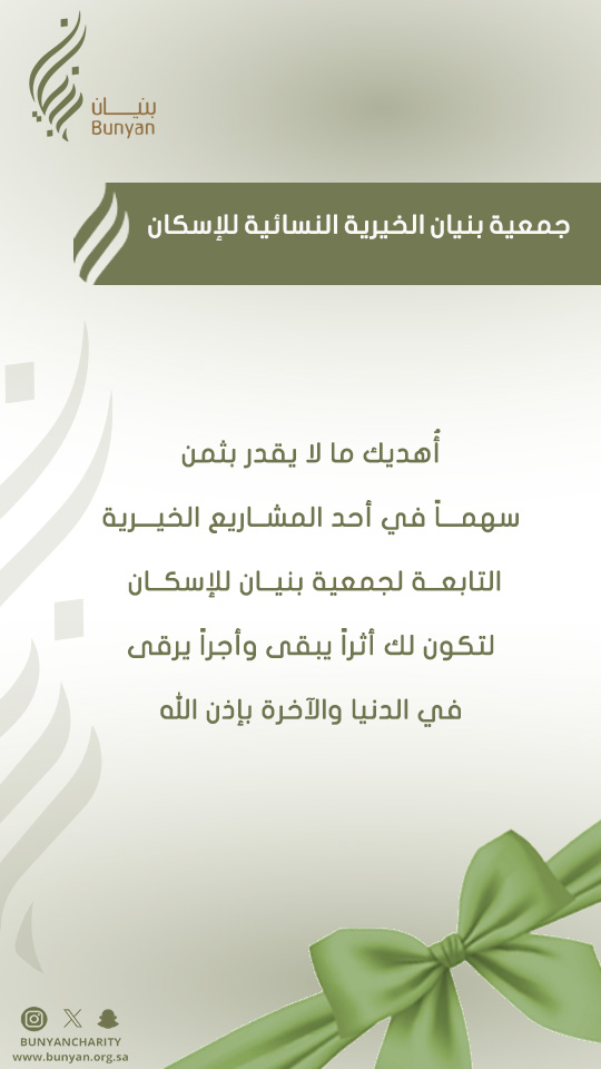 إهد حباً و اجراً للاهل و الاصدقاء و ساهم في دعم جمعية بنيان في مختلف المناسبات الاجتماعية.