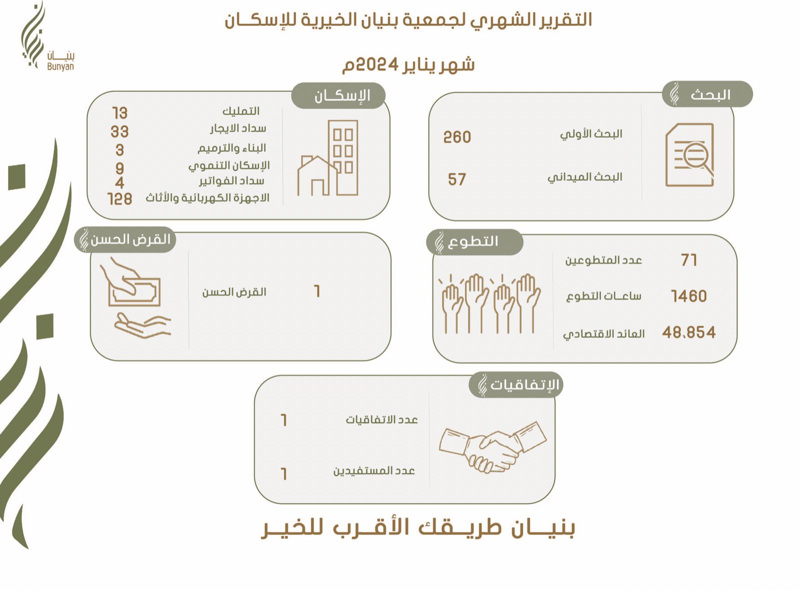 تقرير #جمعية_بنيان_الخيرية_النسائية_للإسكان لشهر يناير 2024 #رؤية_السعودية_2030
